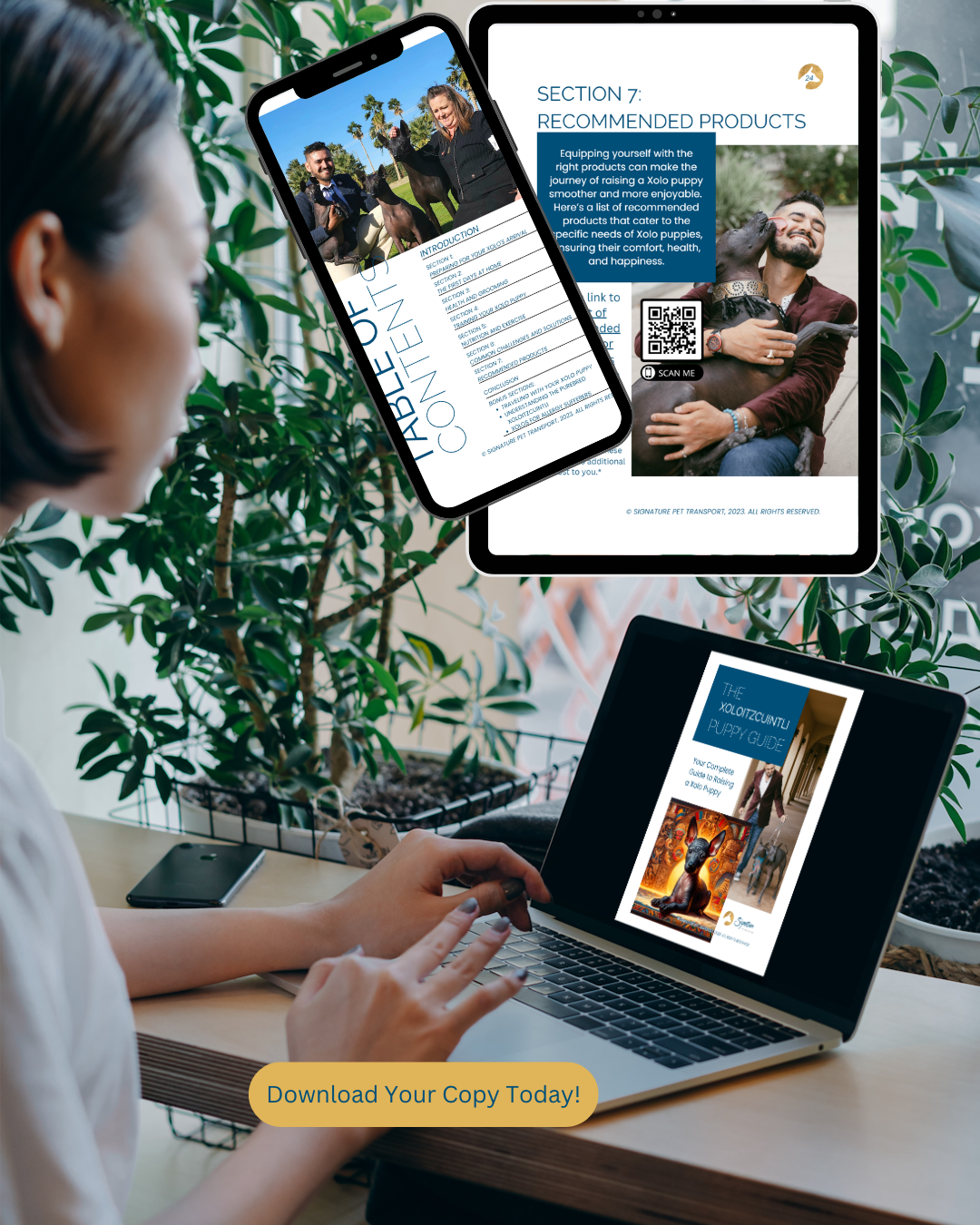 Embark on a unique journey with "The Xoloitzcuintli Puppy Guide: Your Complete Guide to Raising a Xolo Puppy," your definitive guide to raising a Xoloitzcuintli, one of the most ancient and intriguing dog breeds. Authored by Christian Diaz, a renowned Xolo breeder and the founder of Signature Pet Transport, this eBook is a treasure trove of insights, practical advice, and heartfelt wisdom.